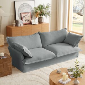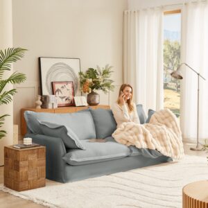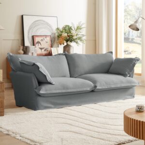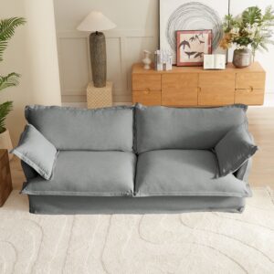 Transform your living space with this stylish slipcover sofa. Featuring a unified slipcover design with precision-trimmed edges, it adds elegance and visual comfort to any room. The concealed leg design provides a sleek, modern aesthetic, while the deep seating offers a cozy, inviting experience. Made from high-quality natural fabric, the sofa is durable, soft, and comfortable, with removable and washable covers for easy maintenance. Perfect for those seeking both luxury and functionality in their home furnishings.