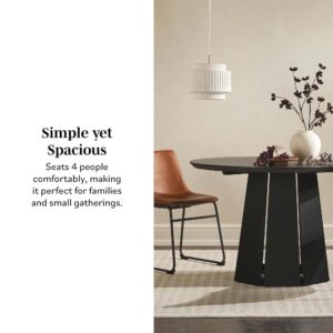 This 48-inch round dining table is the perfect statement-making piece for your kitchen or dining room. Made from solid wood sourced from renewable forests, it stands up to everyday wear and brings a touch of the nature into your home. The round tabletop design style gives you more elbow room while dining. It comfortably seats up to four people, with plenty of room leftover for your dishes, snacks, and décor. The unique paneled wood pedestal base gives the design an elevated twist that stands out every time you’re at the table. Whether you bring this table to your breakfast nook, kitchen, or dining room, you’ll love its perfect balance of aesthetics and functionality.