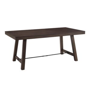 Gather family and friends around this modern farmhouse dining table during all holidays to create memories that will last a lifetime. The rustic frame complements your decor style no matter coastal, country, or modern. You can trust the sturdy frame because of the warp-resistant MDF wood construction and powder-coated steel stretcher. The gorgeous veneer finish adds a rich look to elevate your dining room or kitchen. Add your favorite dining chairs to create a cozy spot for game nights or big dinners.
