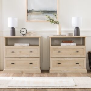 Straightforward and reliable, this classic two-drawer nightstand is a trustworthy addition to any room. This transitional style end table includes two drawers, so you can store a wide variety of accessories and improve your organization along the way. Each drawer has metal telescoping glides that allow smooth access to your prized possessions. This accent stand also features on open cubby so you can quickly find bedtime essentials or TV remotes.
