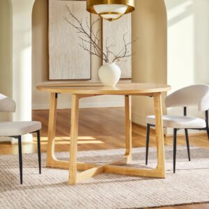 Upgrade your dining game with the Modern Solid Wood Round Dining Table, a statement piece that’s ready for its close-up. With a sleek, geometric leg design, it’s the best way to show off your impeccable taste and save space at the same time. Comfortably seating four, it’s ideal for intimate dinner parties, casual weekend brunches, or a work-from-home kitchen nook. Whether you’re in an apartment, trendy loft, or smaller home, this table seamlessly blends to make your space look put-together and photo-ready. Dinner at home never sounded so good.