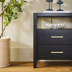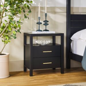 The Isla Solid Wood & Glass Shadow Box Nightstand is the kind of piece that instantly elevates your space—effortlessly modern, refreshingly functional. Crafted from real solid wood with a scratch-resistant tempered glass top that holds up to 40 lbs, it’s as durable as it is design-forward. Spacious drawers glide smoothly to hide the clutter, while the shadow box shelf gives your favorite books, candles, or curated finds their moment. With Walker Edison EZ Assembly™, the drawer assembly is 100% tool-free and it takes 45 minutes or less to build —because chic shouldn’t come with a hardware headache. Perfect for adding style and substance to small spaces or anywhere that deserves a little glow-up.