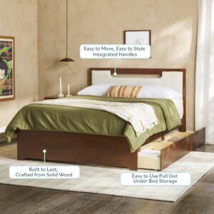 The Sloane 2-Drawer Storage Queen Bed is where timeless mid-century design meets smart, real-life function. With its clean lines, warm wood tones, and elevated platform silhouette, this bed makes your space feel instantly more curated—without the splurge or the stress. Crafted from solid wood and finished with a scratch-resistant surface, Sloane is built to hold up through everything from move-in day to lazy Sundays. Two seamlessly integrated under-bed drawers give you the extra storage you’ve been dreaming of—perfect for linens, off-season clothes, or whatever doesn’t quite fit in the closet. And the best part? Putting it together is refreshingly simple with tool-free drawer assembly, so you can spend more time styling and less time struggling. Whether you’re working with a small bedroom or outfitting your first apartment, Sloane’s space-saving design makes it a perfect fit.