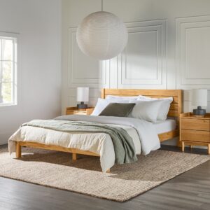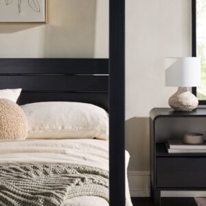 This solid wood canopy bedframe is the perfect backdrop for sweet dreams and lazy Saturdays. A slatted headboard grounds the piece with clean, modern lines, while the low profile adds extra minimalist style. Included support slats mean you can sleep safely without a bulky box spring. Options with and without canopy.