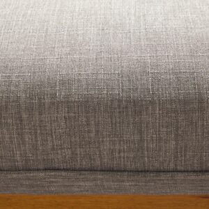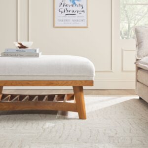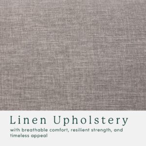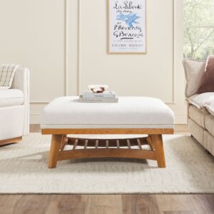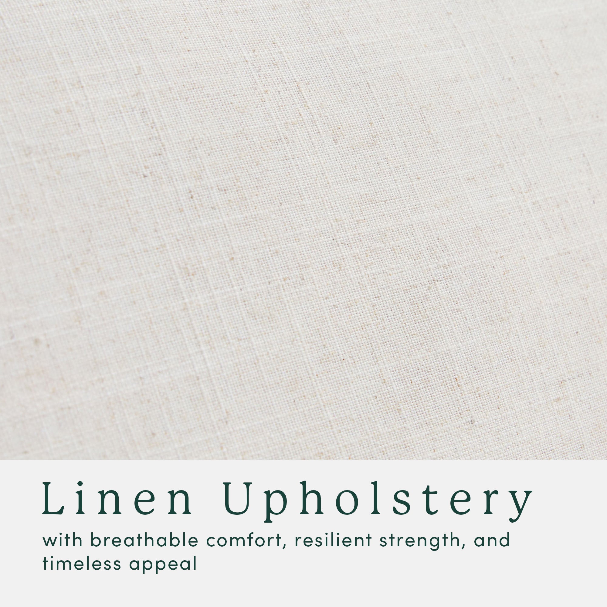 Rustic charm meets European modern elegance in this farmhouse-inspired ottoman, designed to bring warmth and style to any space. From the breathable linen-blend fabric to the plush oversized cushion top finished with refined French seams, every detail was made to elevate your room. It’s the kind of piece that makes a space feel naturally pulled together. Tapered legs in a rich oak finish give it that grounded, artisanal look, while the curved trestle base adds just the right touch of visual interest in contrast to the square shape. And don’t worry—assembly couldn’t be easier. Just screw on the legs, and you’re ready to kick back in 15 minutes or less. The durable wood frame built to handle everyday lounging, so whether it’s styled as a coffee table or an ottoman, it’s perfectly oversized to be a cozy foot rest, décor piece, or provide additional seating for living spaces or bedrooms.