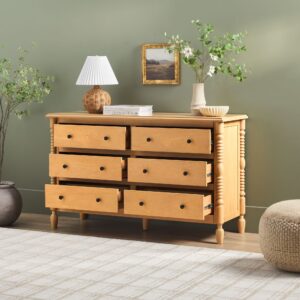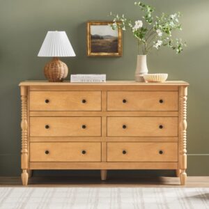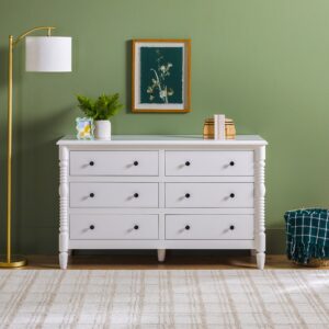 From box to beautiful in 30 minutes or less, the Vivienne 6-Drawer Dresser comes together easily—then stuns with its heritage-inspired design and intricate wood-turning details. Like your great-grandmother’s heirloom — but updated. Made from durable solid wood and solid wood veneer, this dresser is built for everyday living. The accessible price point won’t blow your budget, yet you’ll get the look of the moment and the quality craftsmanship typically found with higher-ticket pieces.