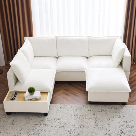 This sectional sofa combines style, comfort, and functionality to elevate any living space. With its free configurations, you can effortlessly reconfigure it into a U-shaped or L-shaped layout by moving the ottoman and coffee table, making it ideal for gatherings, movie nights, or intimate settings. The versatile coffee table doubles as both an ottoman and […]